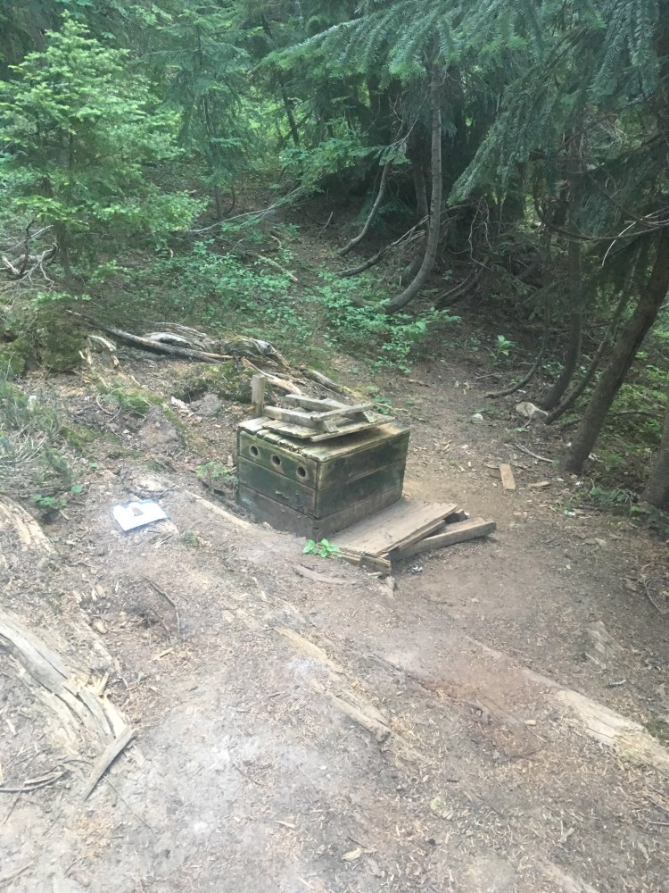 As I was walking along I see a wooden sign saying “Toilet” with an arrow… okay, I gotta se this. I follow the spur trail 20 yards or so when I come across a wooden box with a hole in it. I guess technically anything is a toilet….