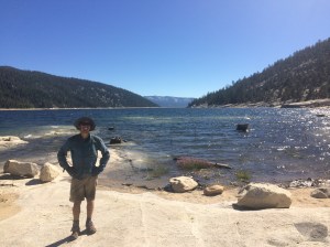 I walk with him, he sits on a chair and I sit on the ground next to it. He introduces me to everyone in the circle, his two sons (with whom he is hiking the JMT), the Royals (a couple also hiking JMT -whose real names are Will and Kate), and Singularity (a JMT hiker who happens to be a physicist and also lost a boot once in an attempt to throw it across a river). A bucket is handed to me – M&Ms, trail mix, peanut butter, tortillas, olive oil… SERIOUSLY? I ask, “can I take from here without discretion?” He chuckles, “Pretty much, just leave a little. We promised to help out one more guy.”